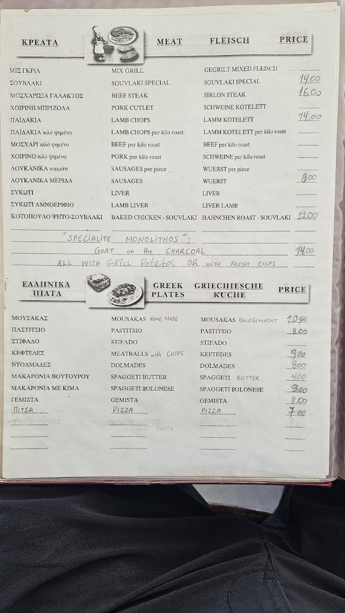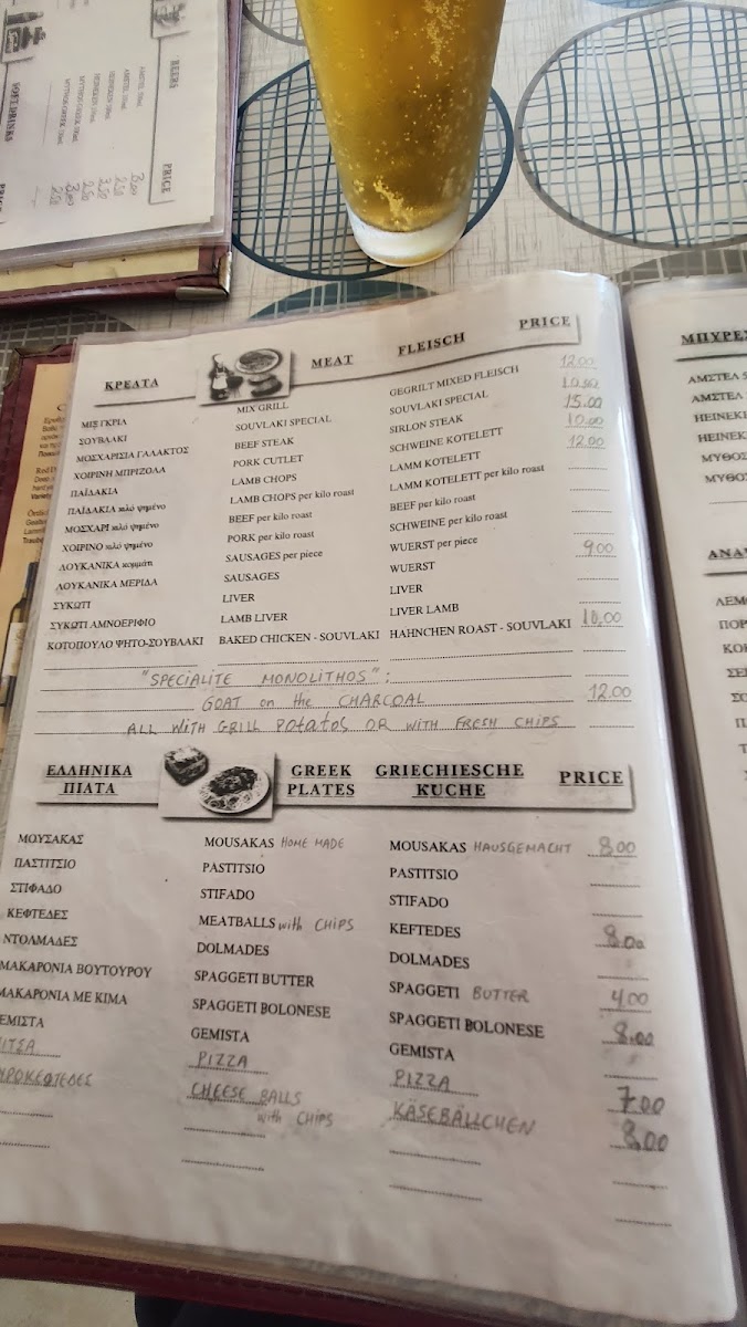 Introducing the menu at Taverna Christos Corner. Grill kafe bar, located in the scenic Monolithos, Greece, means embarking on a delightful culinary journey. This charming eatery captures the essence of authentic Greek cuisine, offering dishes made with local ingredients and prepared with love.